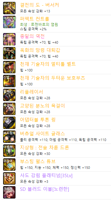힐더 서버 버서커 랭커 [슈판]님의 장비 템셋팅 템세팅 아바타 탈리스만 스킬트리
