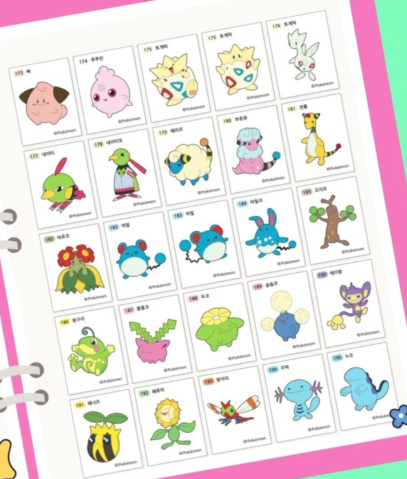 포켓몬스터 띠부띠부씰 2세대 스티커 종류 모음 정리 도감 109종 116개 고화질
