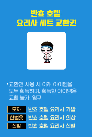 메이플스토리 반쵸 호텔 요리사 세트 교환권